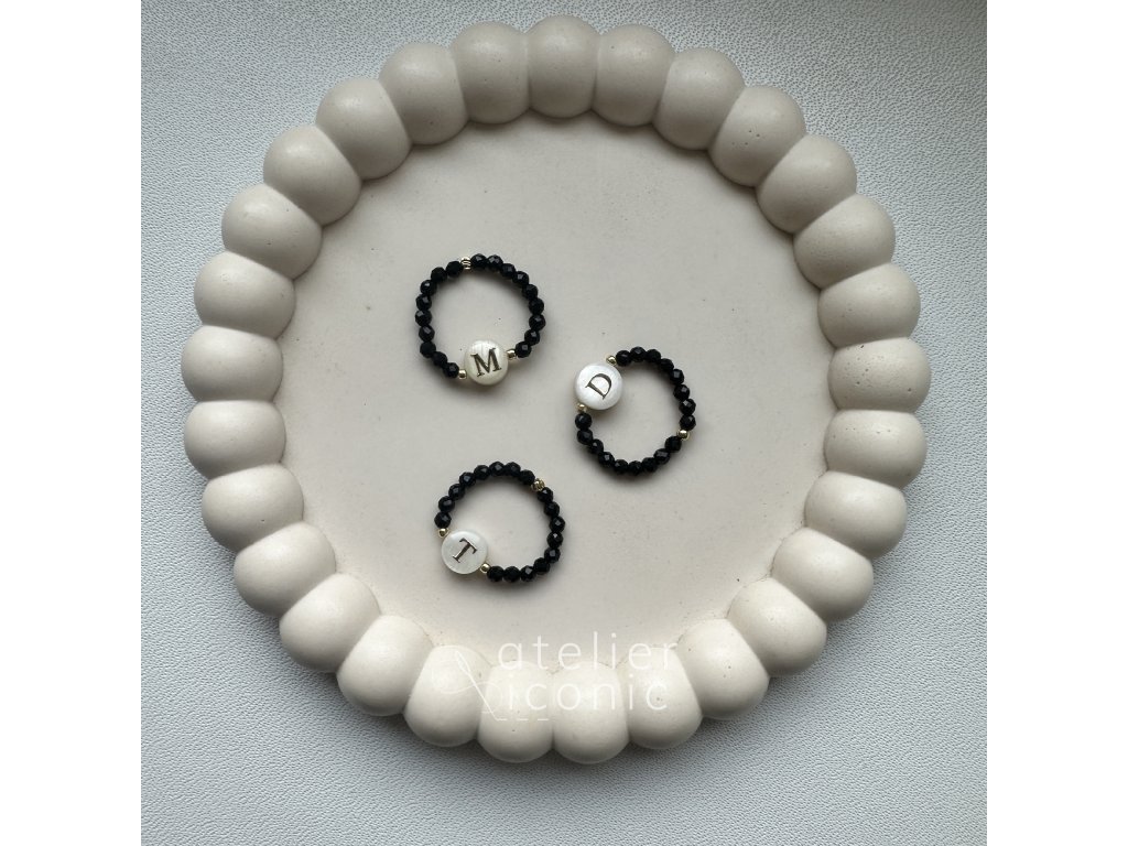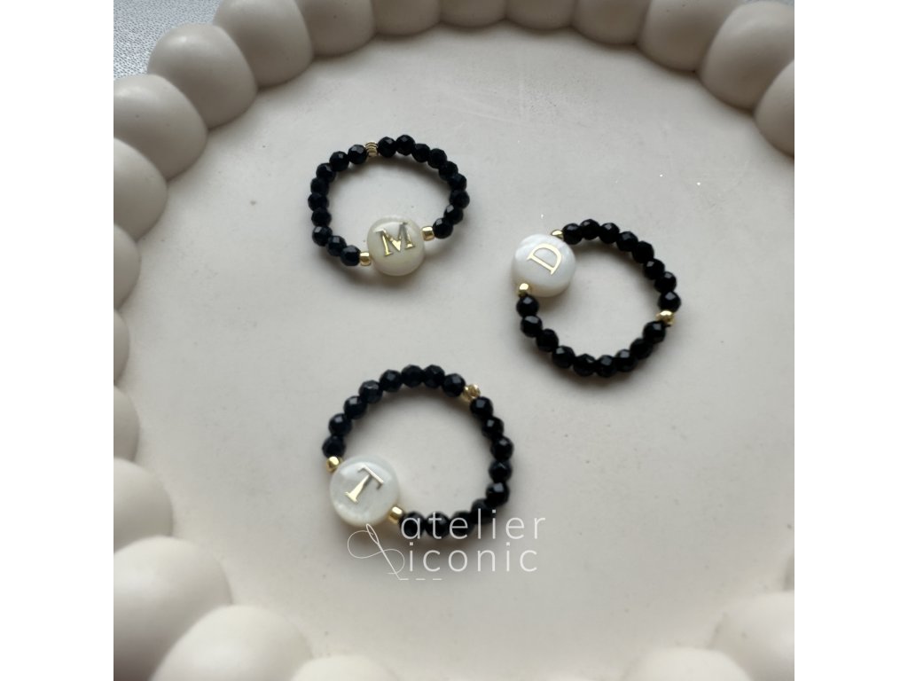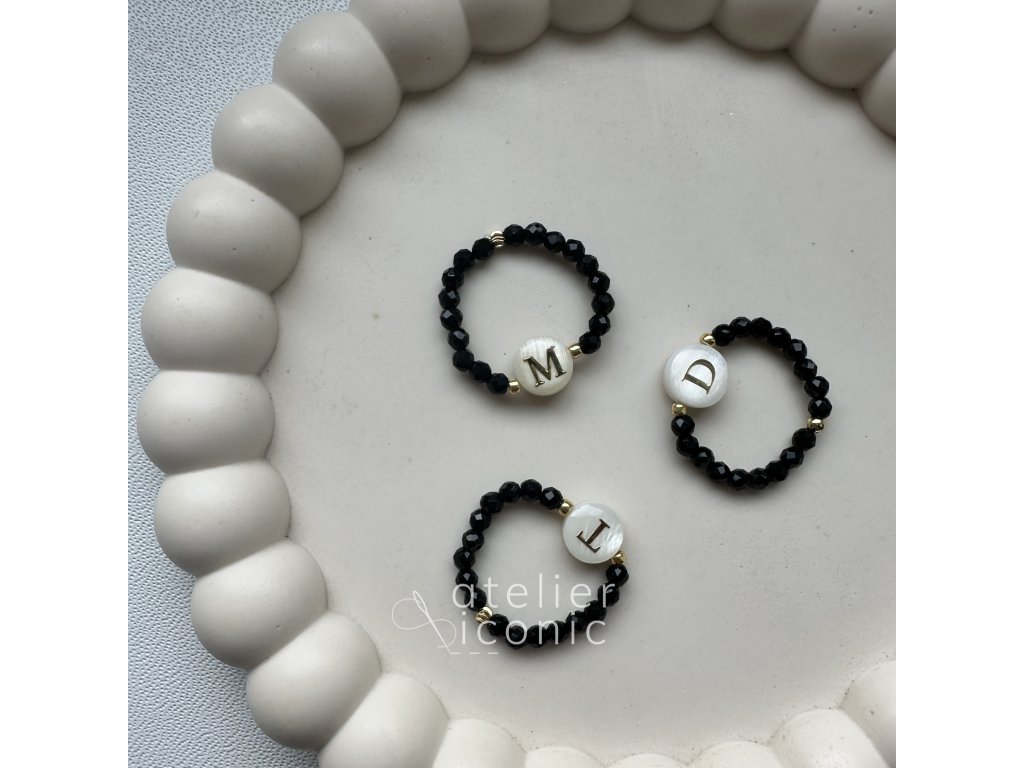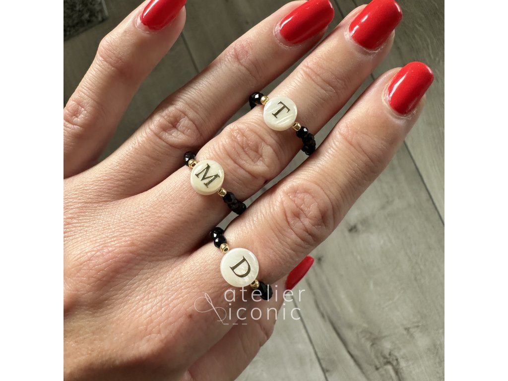Ónyx je známy svojimi ochrannými vlastnosťami a schopnosťou podporovať sebadôveru, je doplnený krásnym písmenkom z perlete, ktoré pridáva šmrnc a osobný charakter.